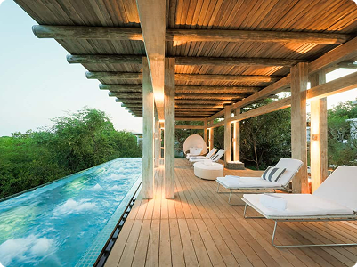 Fly to Hoedspruit and transfer to Kapama Private Game Reserve in the Greater Kruger region. Enjoy twice-daily game drives in search of the Big Five alongside expert rangers and trackers, along with guided nature experiences within the reserve