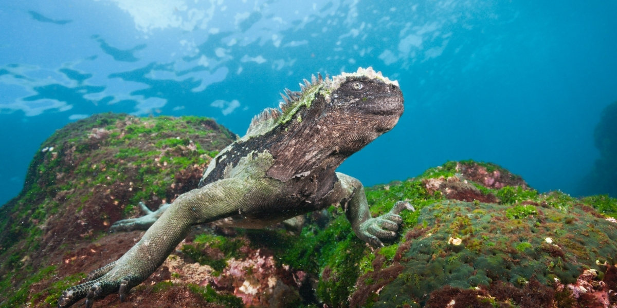 Penguins swim alongside tropical fish. Sea lions spiral through water columns with marine iguanas (the only seafaring lizards on Earth). Hammerhead sharks move in formations so dense they briefly blot out the light. It is far from anything one imagines.